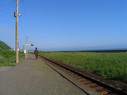 ホームの柵に寄りかかって海を眺めていました。