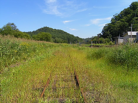 上りホーム側には草に埋もれた側線が1本残っていました。